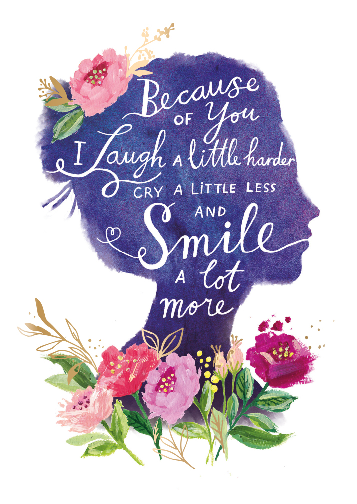 Felicitare - Because of you I laugh a little harder, I cry a little less and I smile a lot more.