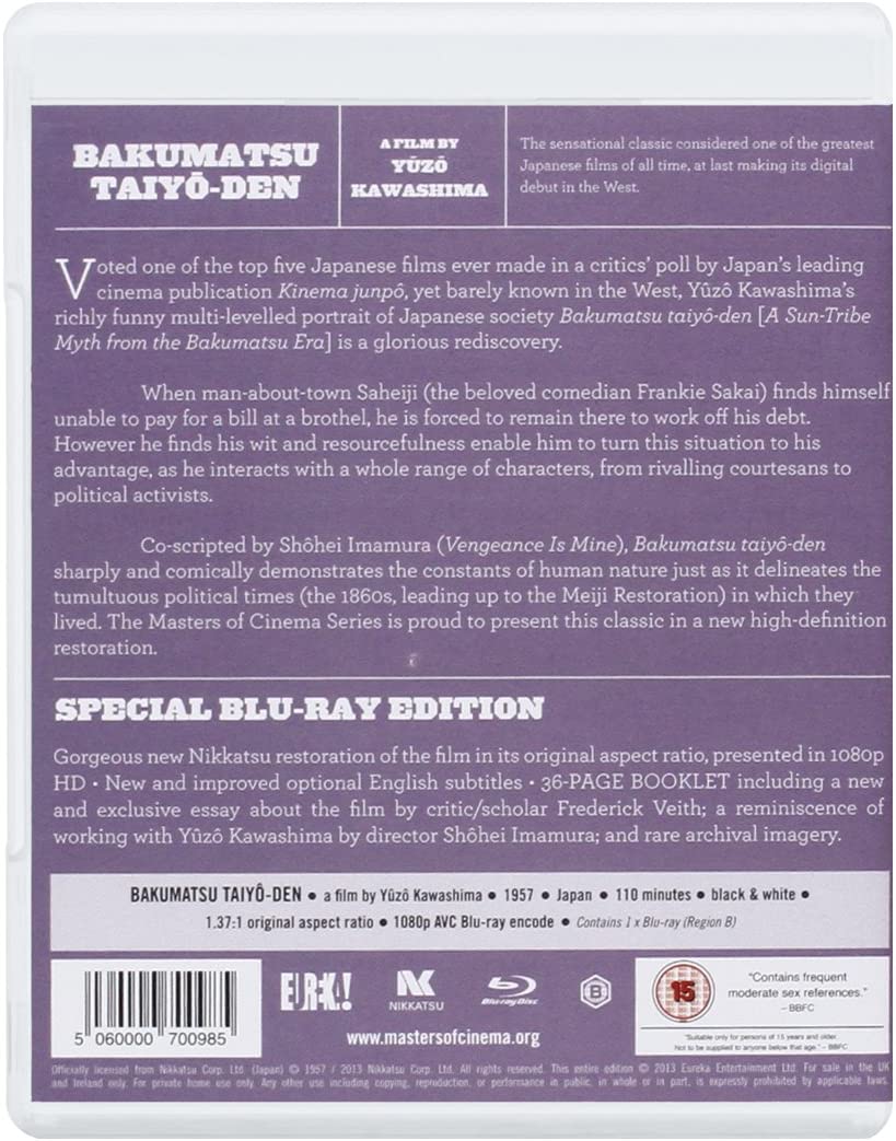 Voted one of the top five Japanese films ever made in a critic's poll by Japan's leading cinema publication Kinema Junpô, yet barely known in the West, Y ûzô Kawashima's richly funny multi - levelled portrait of Japanese society Bakumatsu taiyô - den [ A Sun - Tribe Myth from the Bakumatsu Era] is a glorious rediscovery.