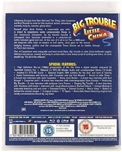 One of Carpenters most enjoyable and best loved films, Big Trouble in Little China brilliantly juggles delirious set-pieces, comedy and kung-fu action with a razor sharp script of corking one-liners, as Jack would say It s all in the reflexes .