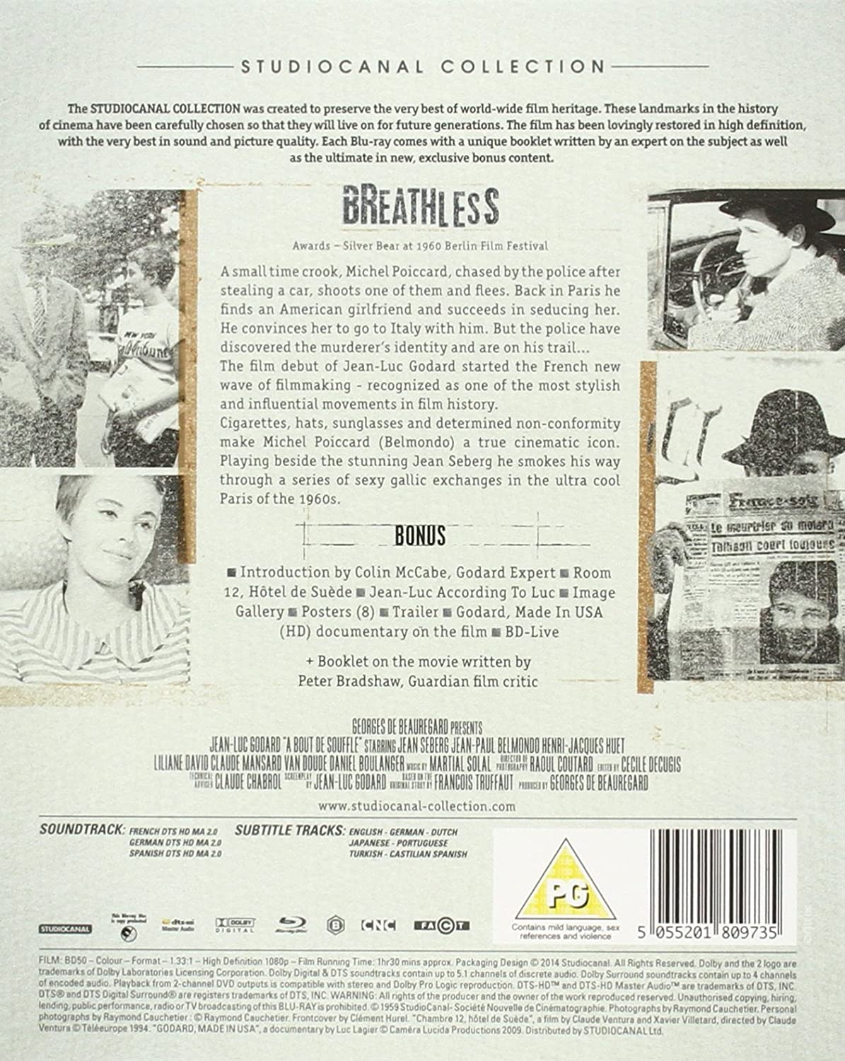 Jean-Luc Godard's groundbreaking tale of the brief love affair between petty criminal Michel (Jean-Paul Belmondo) and young American student Patricia (Jean Seberg). Michel has killed a motorcycle cop and is now hiding out in Patricia's Paris apartment, but the police are getting closer, and as Michel falls deeper in love with Patricia, his time also gets shorter and shorter. Godard's film, one of the first and most important statements of the French New Wave, caused a revolution in the way films were made, opening up many new, previously untried possibilities for cinema.