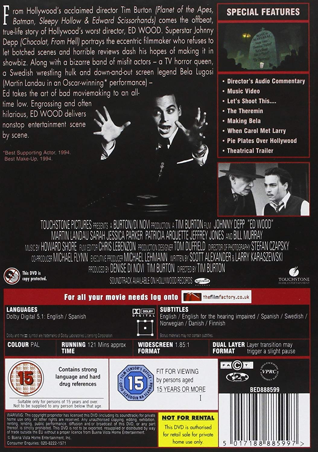 Because of his eccentric habits and bafflingly strange films, director Edward D. Wood Jr. is a Hollywood outcast. Nevertheless, with the help of the formerly famous Bela Lugosi and a devoted cast and crew of show-business misfits who believe in Ed's off-kilter vision, the filmmaker is able to bring his oversize dreams to cinematic life. Despite a lack of critical or commercial success, Ed and his friends manage to create an oddly endearing series of extremely low-budget films.