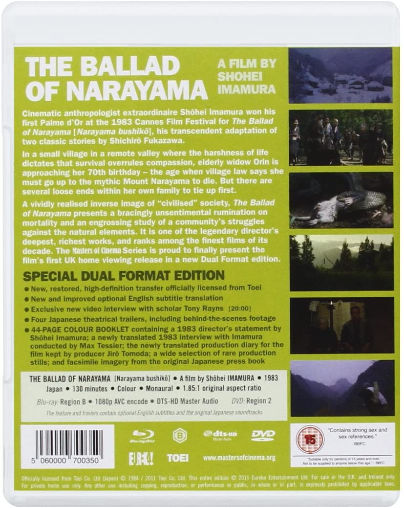 Creating a vividly realised inverse image of 'civilised' society with typical directness and black humour, Imamura presents a bracingly unsentimental rumination on mortality and an engrossing study of a community's struggles against the natural elements. Handled with a masterful control and simplicity, moving effortlessly between the comic and the horrific, The Ballad of Narayama is one of the legendary director's deepest, richest works, and ranks among the finest films of its decade.