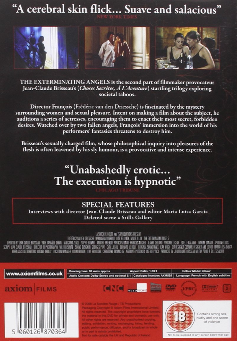 From filmmaker provocateur, Jean-Claude Brisseau (Noche Blanche, Choses Seccrètes) comes THE EXTERMINATING ANGELS, a startling journey into the erotic. Director François (Frédéric van den Driessche) is fascinated by the link between taboo and female pleasure. Intent on making a film about the subject, he auditions a series of actresses, who enact their deepest, forbidden desires. Watched over by two fallen angels, François immersion into the world of his actresses fantasies threatens to destroy him. Brisseau s sexually charged film, whose philosophical inquiry into pleasures of the flesh is often leavened by the director s sly humour, is a provocative and intense experience. Special Features: Interview with Jean-Claude