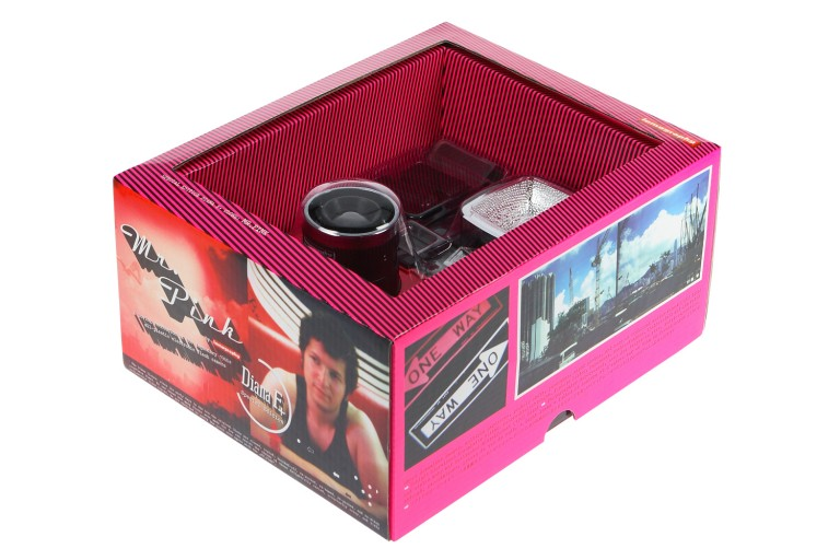 Make the task of taking photographs easy with the retro Diana F+ Mr. Pink from Lomography. It features a detachable 75 mm lens that lets you shoot photos in three apertures or in the pinhole mode. The lens comes with a zone focusing system that focuses on your subjects quickly. The Diana F+ flash, which is attached to the camera through a metal plug connection, lets you shoot your subjects with ease, even in dim light. The color gel filters provide a different look and feel to your photos.