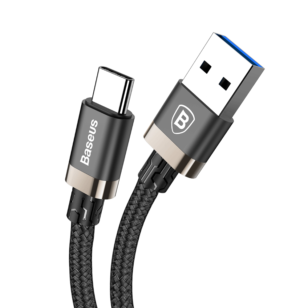 Baseus Cablu Golden Belt USB 3.0 la Type-C este imbracat in impletitura de nylon si se poate utiliza atat pentru incarcare cat si pentru sincronizare date de mare viteza. Are un cauciuc flexibil in jurul mufelor pentru o rezistenta mult mai mare la uzura de zi cu zi.