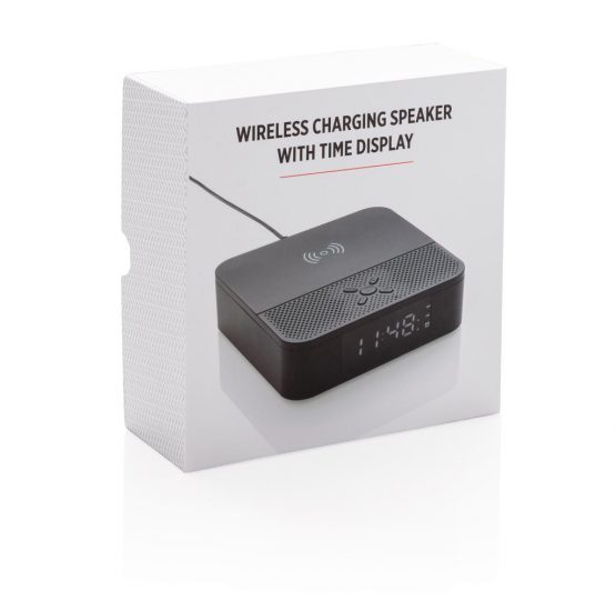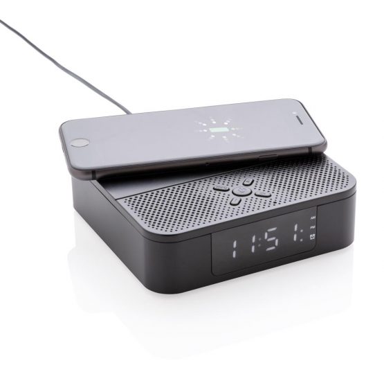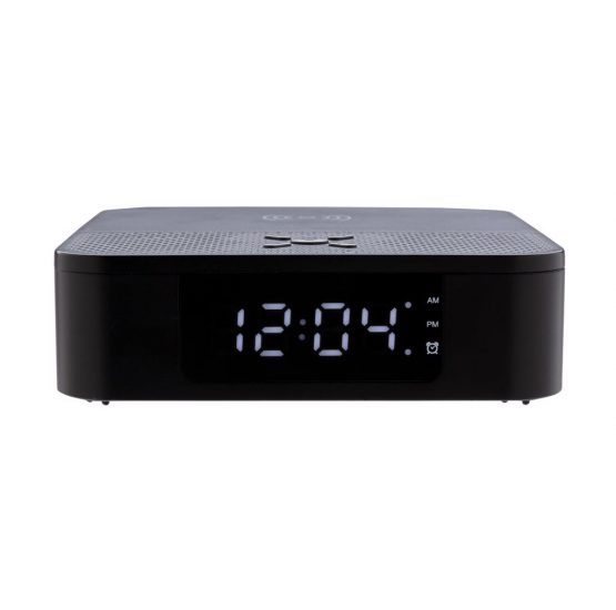 Boxă cu încărcător wireles și ceas cu alarmă.