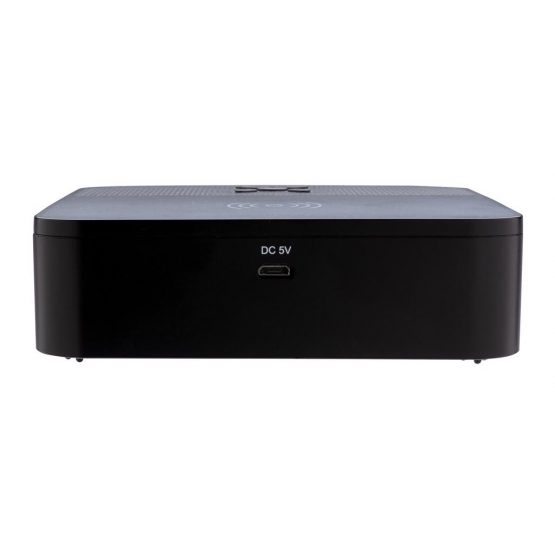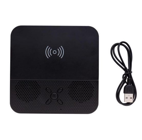 Boxa are 2 difuzoare de 3W, acumulator integrat de 2000 mAh pentru încărcarea wireless a telefoanelor compatibile, ceas cu alarmă și funcție hands free calling. Distanța de operare pentru redarea sunetului wireless până la 10 metri. Boxa funcționează cu baterie sau cu alimentare prin cablul USB.
