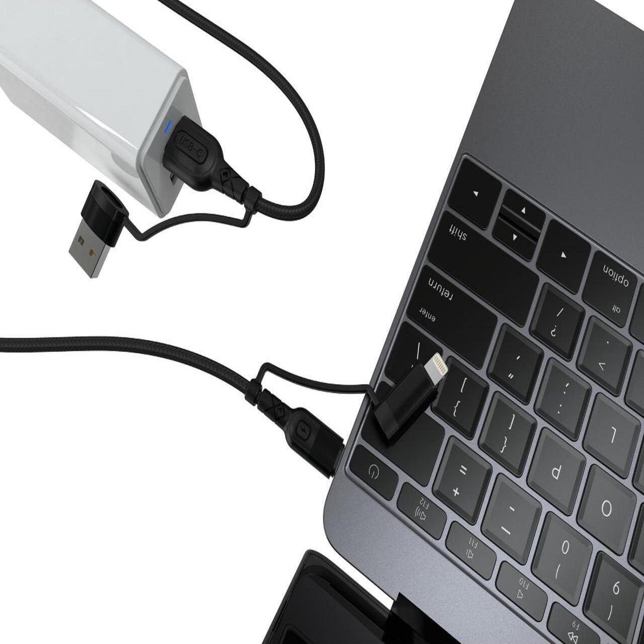 Cablu - Fisheye Series - Multi-connector 4 in 1, USB-A & Type-C la Type-C & Lightning