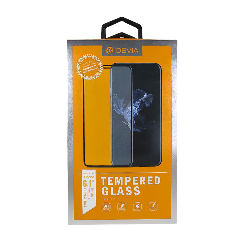 Folia de sticla temperata pentru iPhone XR 6.1 inch Van Entire View acopera intreg ecranul telefonului si are marginile rotunjite.