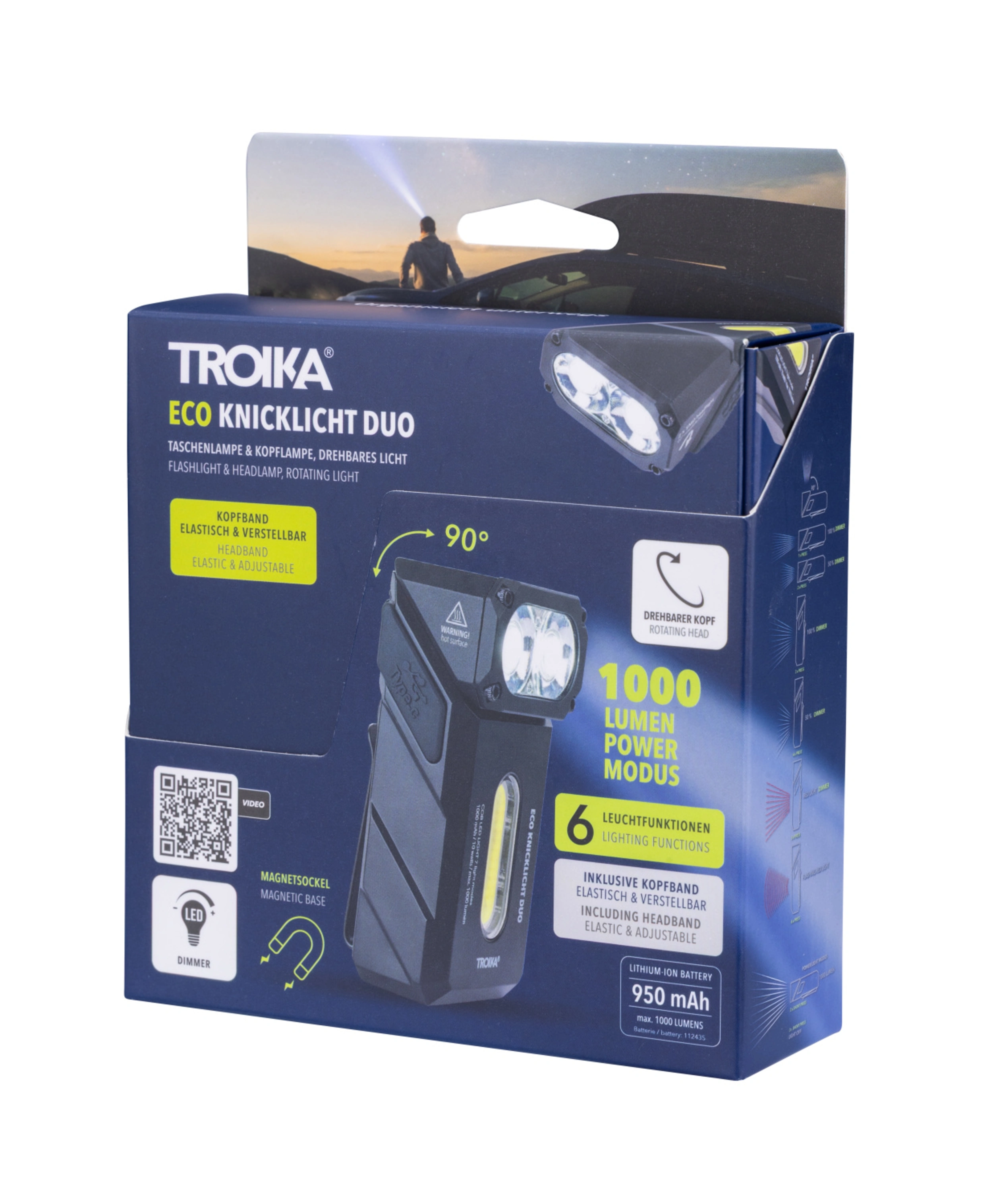 Trei funcții într-un singur dispozitiv – lanternă, lampă de lucru și lanternă frontală, combinate într-un design flexibil, pliabil și ultra-versatil – ECO KNICKLICHT DUO.