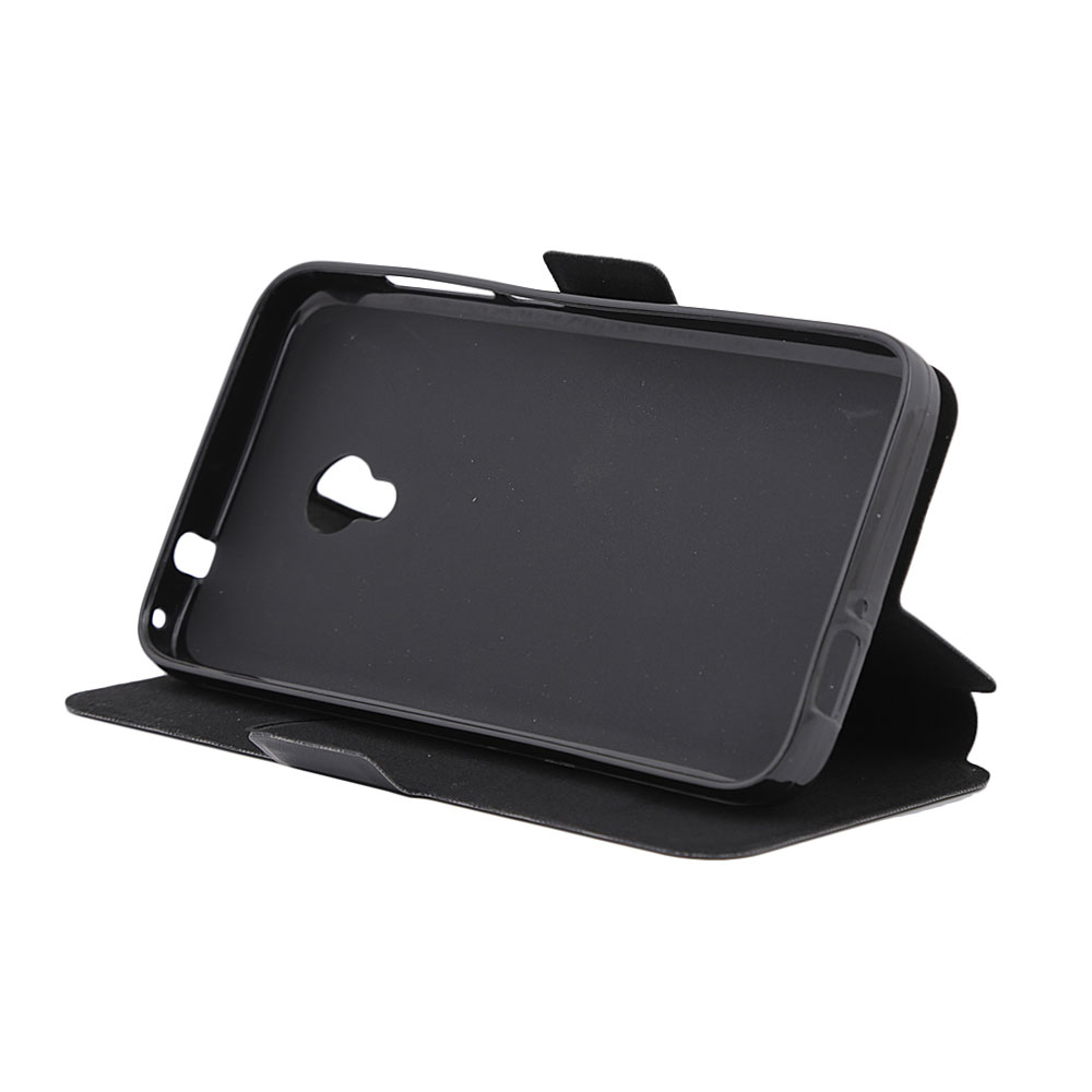 Husa de tip book de la Lemontti pentru Alcatel U5 4G / Orange Rise 52 este fabricata din piele ecologica, iar prinderea telefonului se realizeaza intr-un suport din silicon.