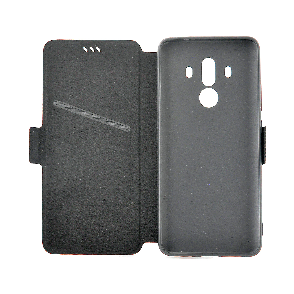 Husa de tip book de la Lemontti pentru Huawei Mate 10 Pro este fabricata din piele ecologica, iar prinderea telefonului se realizeaza intr-un suport din silicon.