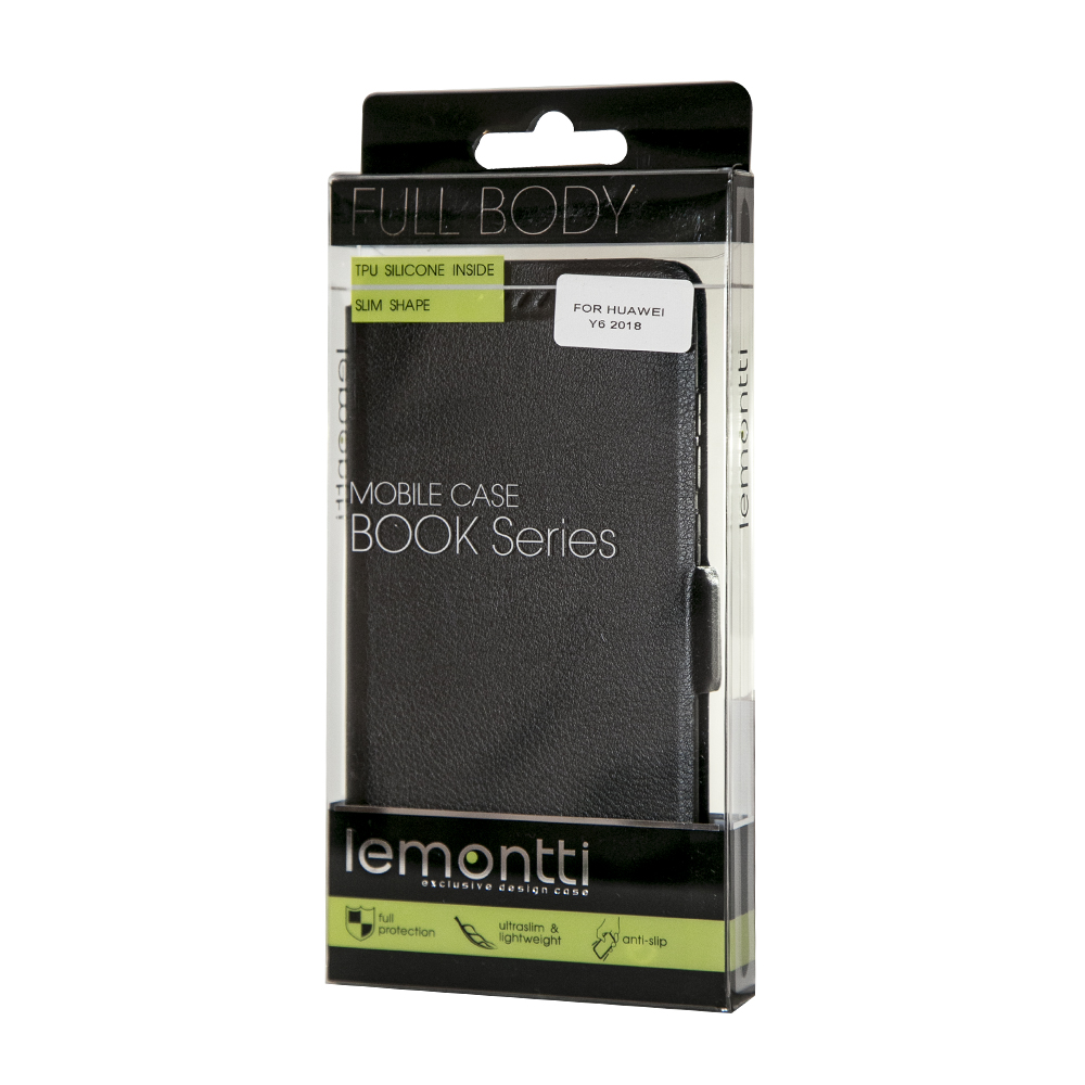 Husa de tip book de la Lemontti pentru Huawei Y6 2018 este fabricata din piele ecologica, iar prinderea telefonului se realizeaza intr-un suport din silicon