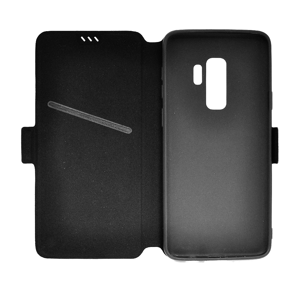 Husa de tip book de la Lemontti pentru Samsung Galaxy S9 Plus G965 este fabricata din piele ecologica, iar prinderea telefonului se realizeaza intr-un suport din silicon.