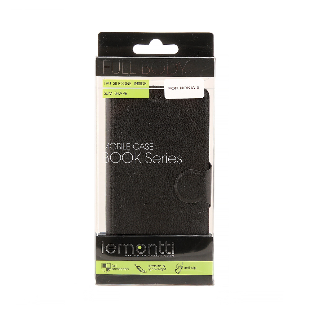 Husa de tip book de la Lemontti pentru Nokia 5 este fabricata din piele ecologica, iar prinderea telefonului se realizeaza intr-un suport din silicon.