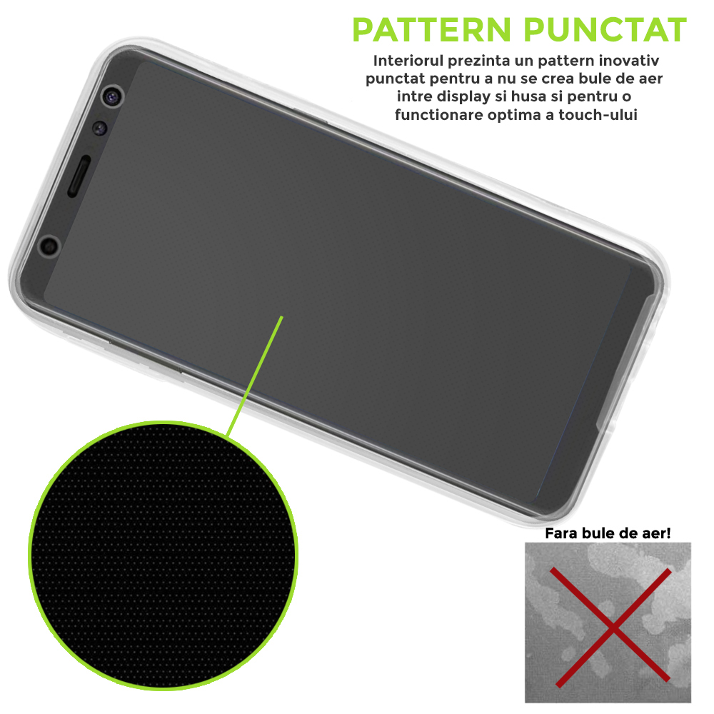 * Interiorul prezinta un pattern inovativ punctat pentru a nu se crea bule de aer intre display si husa si pentru o functionare cat mai exacta a touch-ului.