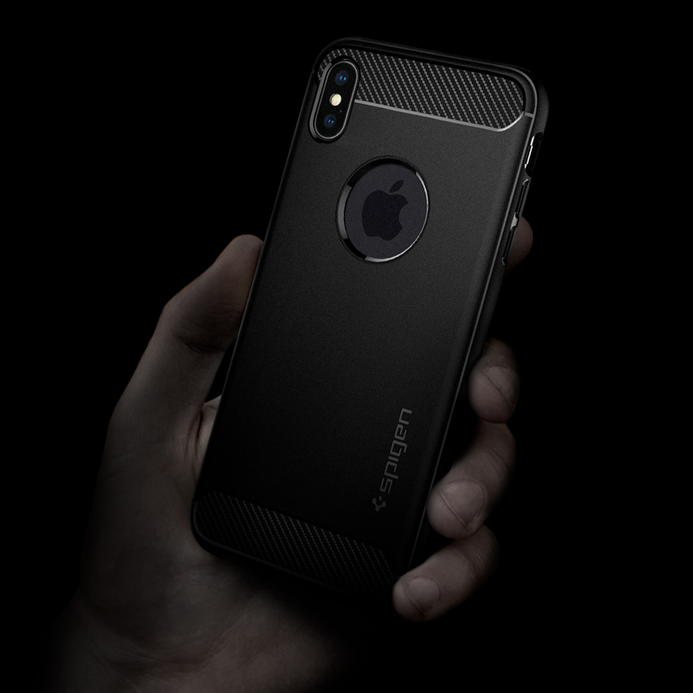Spigen Husa Rugged Armor pentru iPhone XS / X protejeaza telefonul impotriva zgarieturilor si socurilor. Colturile folosesc tehnologia Air Cushion pentru o absorbtie cat mai eficienta a socurilor. Suprafata husei este mata cu doua zone in partea de sus si jos a husei ce au aspect tip Carbon.