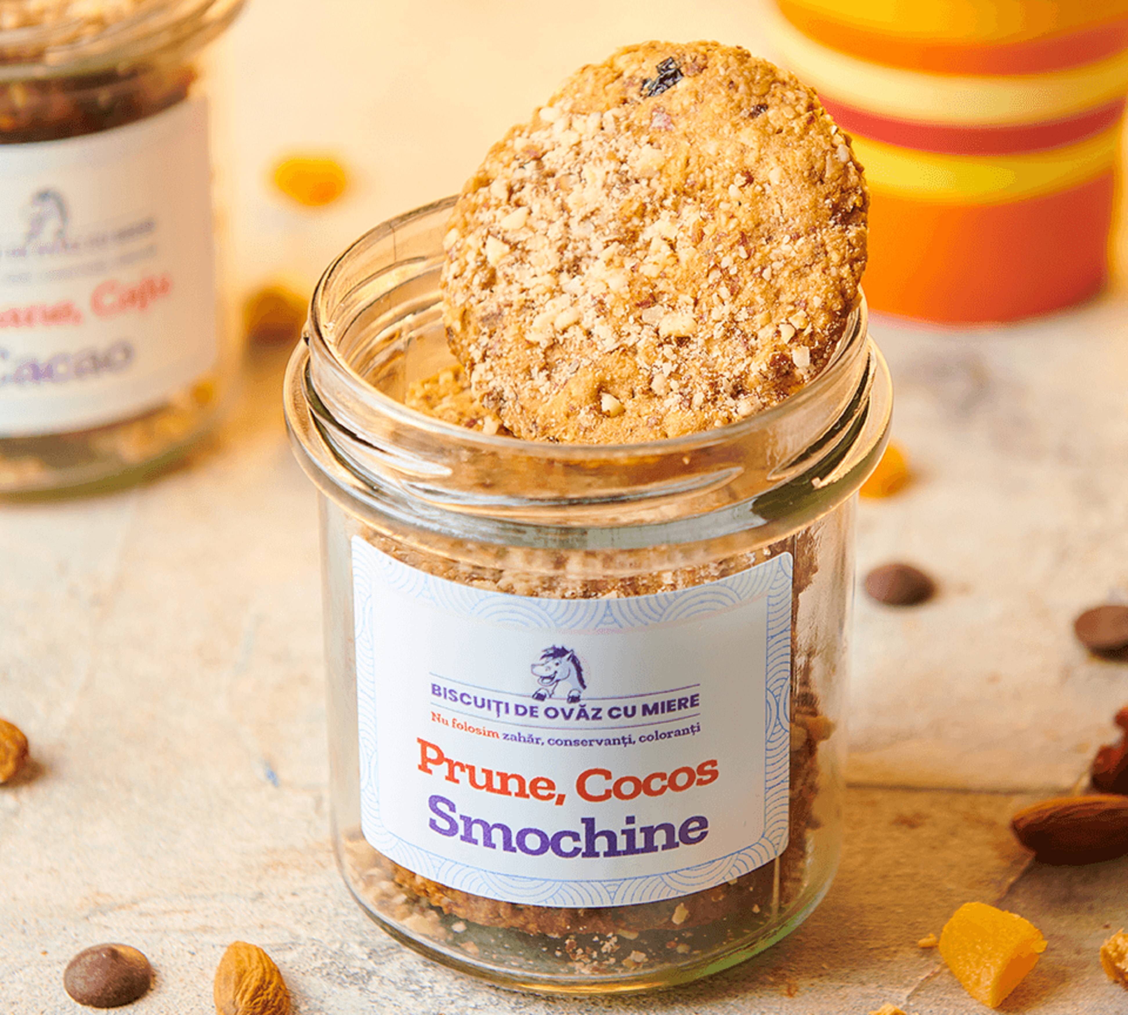 Atât prunele cât și smochinele, oferă intensitate fiecărui biscuit, pe când cocosul îi ofera aroma ușor dulceagă și caracterisitică. Nu am folosit deloc zahăr, ci doar puțină miere românească, de la un producător mic.