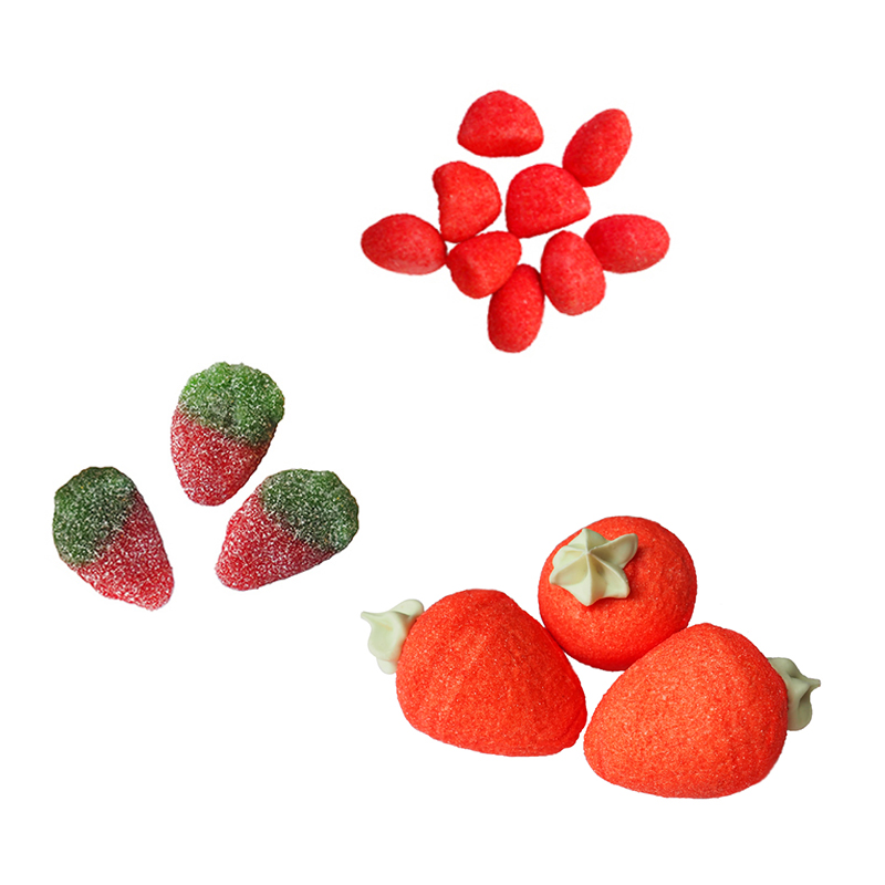 Dacă vă plac căpșunile, cu sigurață veți aprecia acest mix din trei feluri de jeleuri cu aromă de căpșuni.