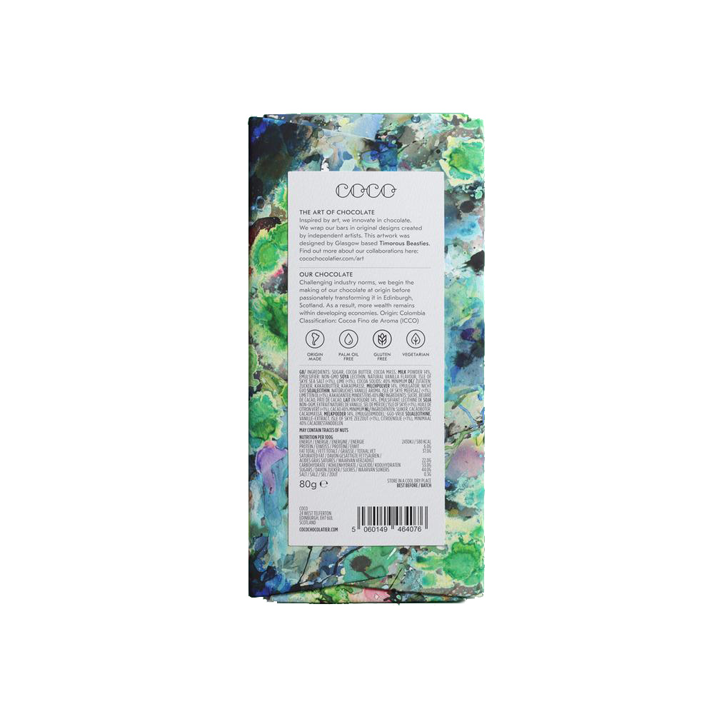 Ciocolată cu lapte - sare de mare si lime, ediție limitată într-un ambalaj cu designul semnat de studioul Timorous Beasties - Kaleido Splatt.
