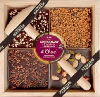 Ciocolata neagra in cutie de lemn, 4 sortimente