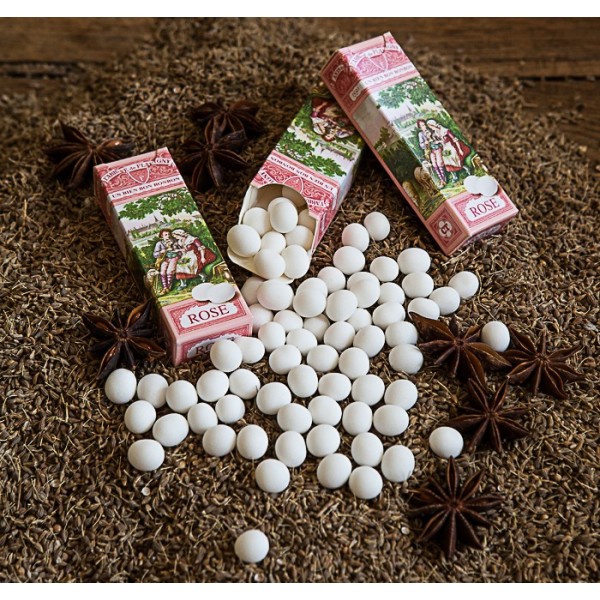 Cutie cu bomboane cu anason și aromă de trandafir.