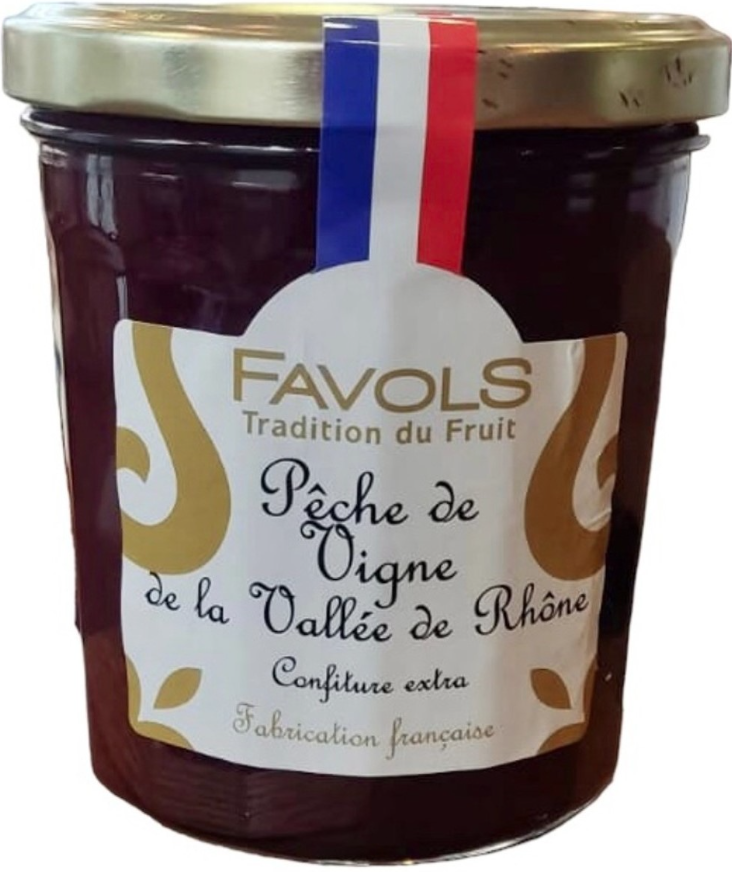 Gem din piersici parfumate cu pulpă roșie care cresc în renumitele podgorii din Valea Ronului.