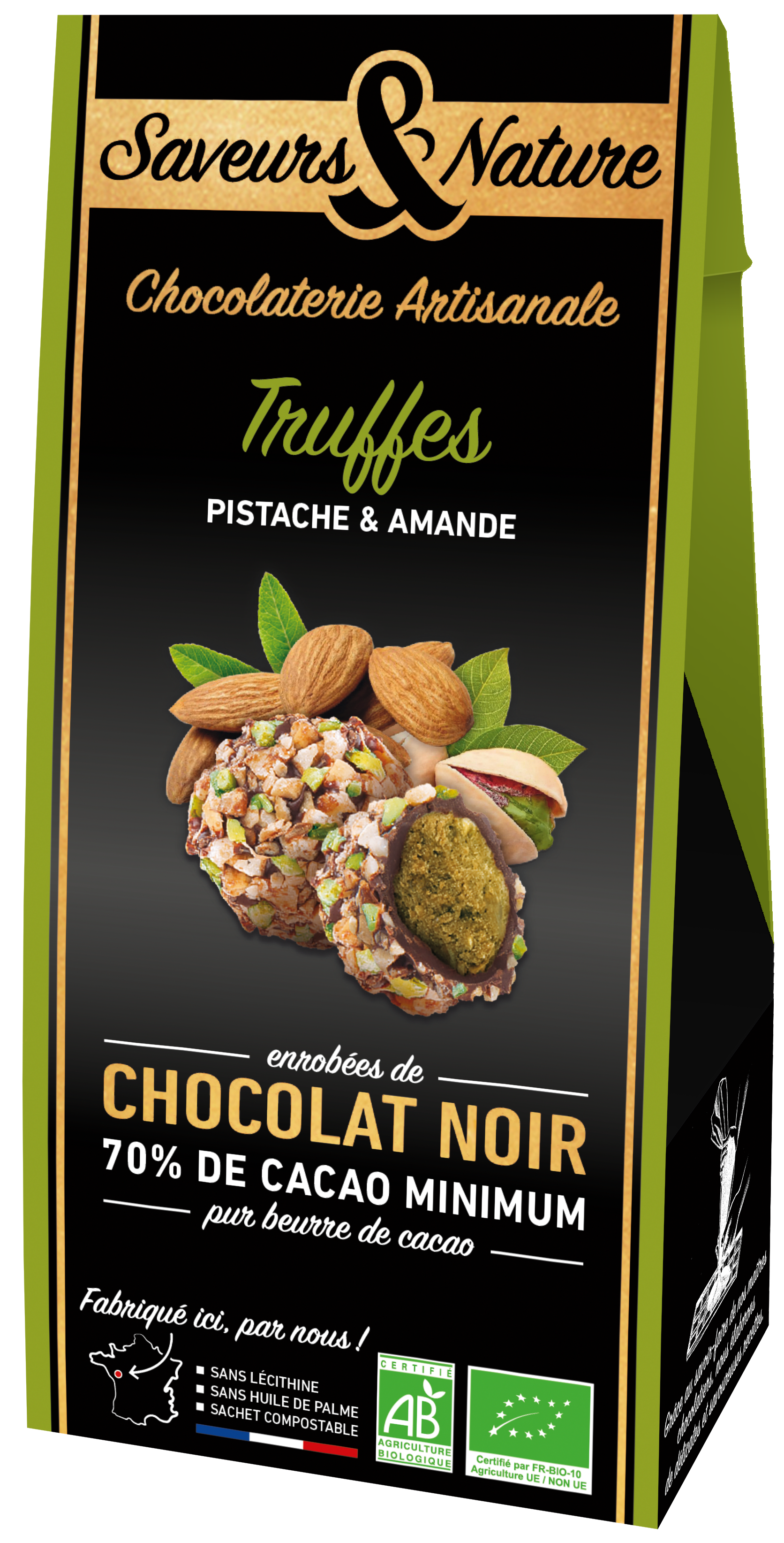 Trufe cu migdale si fistic BIO - Ballotin truffes amande pistache