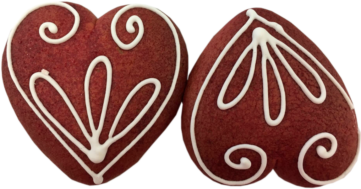 2 bucati turta dulce, cu glazura, in forma de inimioara.