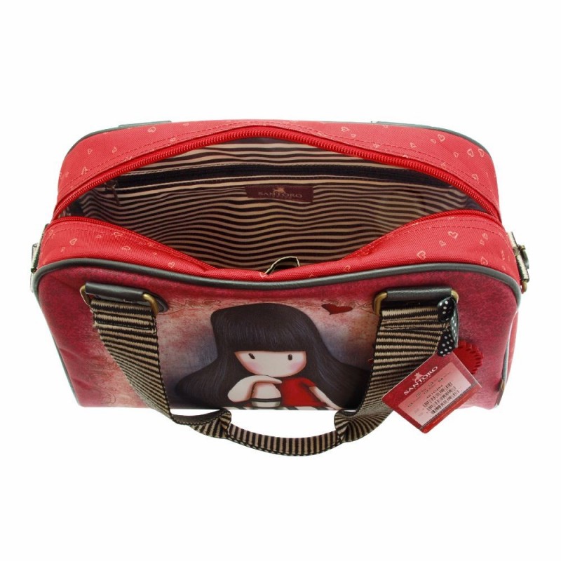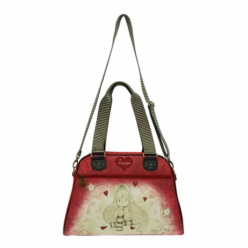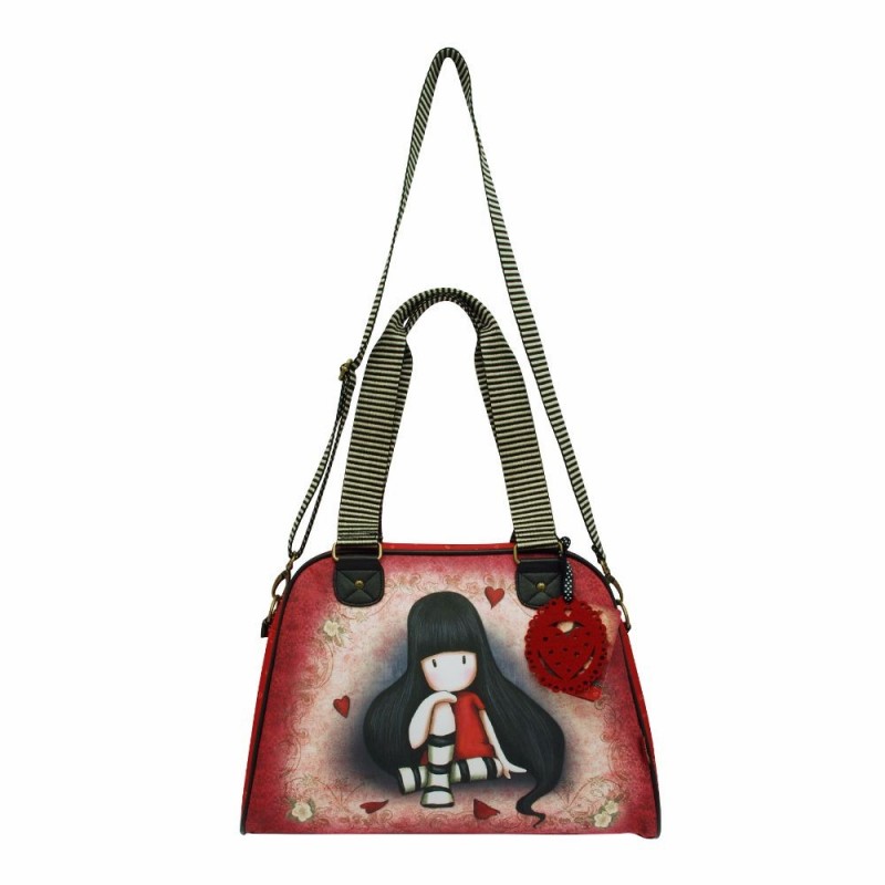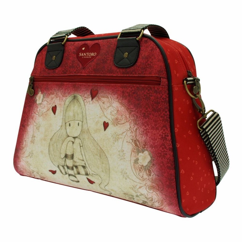Geanta are mai multe seturi de bretele, facand posibila purtarea acesteia pe umar sau in mana. Designul este unul placut, avand ilustrata pe ambele parti o simpatica fetita Gorjuss. Fermoarele sunt in forma de inima, oferind acestui obiect o delicatete aparte.