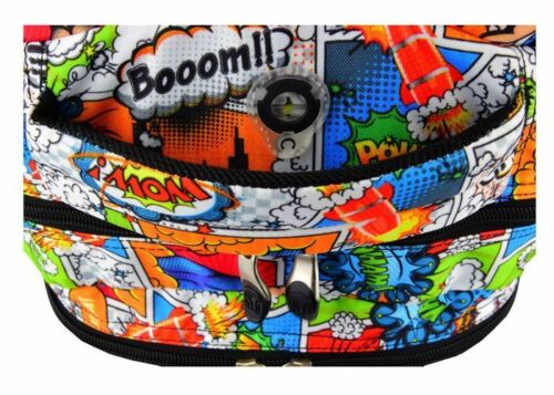 Acest ghiozdan oferă confort și siguranță, spate profilat, bretele moi cu lungime reglabilă, material impermeabil și mâner armat ergonomic.