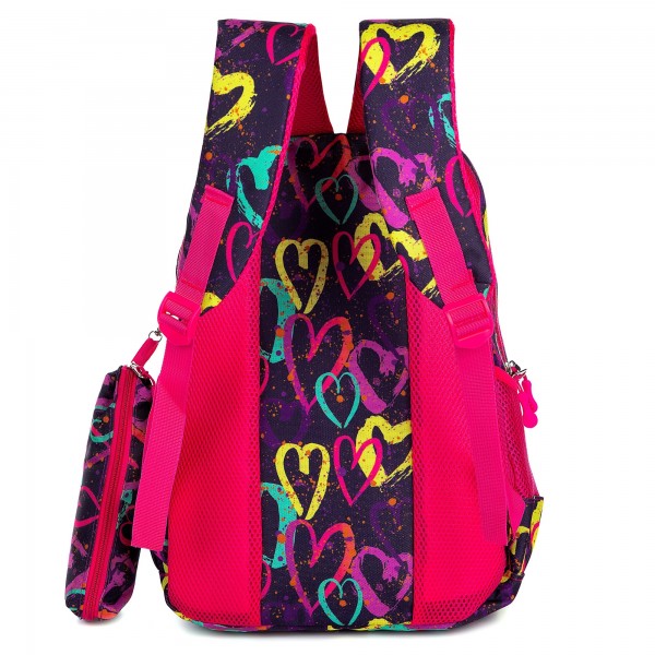 Ghiozdan pentru școală cu penar, Mesco "Hearts".