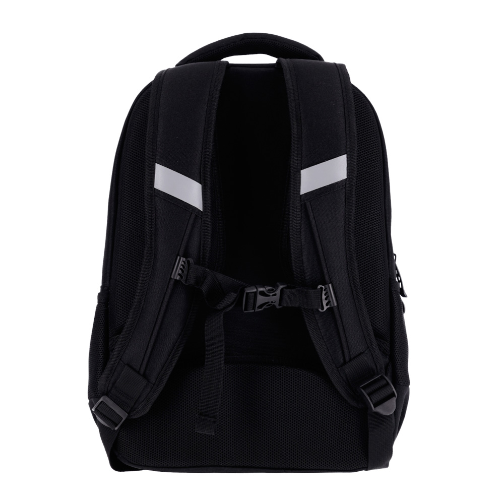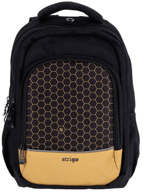 Ghiozdanul STRIGO este prevazut cu suport chei, compartiment pentru laptop, orificiu casti, buzunar secret, buzunare pentru sticla de apa, elemente reflectorizante.