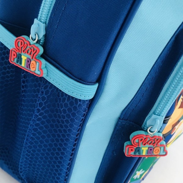 Ghiozdan mic cu 2 compartimente de diferite dimensiuni ce au deschidere cu fermoar, 1 buzunar lateral, bretele buretate si reglabile. Fermoarele sunt accesorizate cu personajele in miniatura.