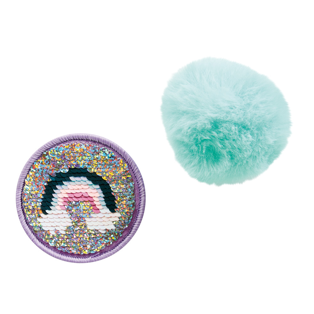 Ghiozdanul include doua aplicatii interschimbabile din cauciuc, cu scai (tip Velcro)