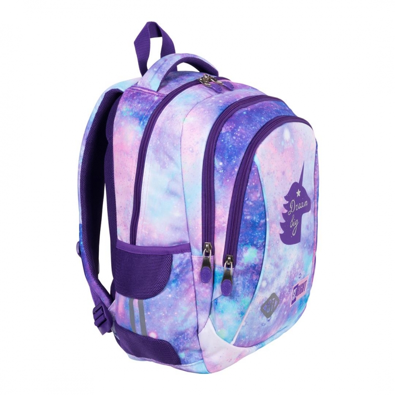 Ghiozdan triplu compartimentat cu următoarele carcateristici: