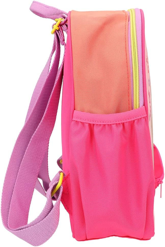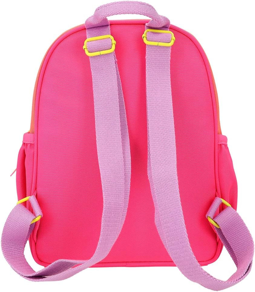 Cu acest rucsac copiii sunt bine echipați pentru școală, excursii sau calatorii. Are un compartiment principal mare, un buzunar frontal și un compartiment interior suplimentar pentru depozitarea rechizitelor școlare, jucăriilor și articolelor esențiale de călătorie. Rucsacul este echipat cu bretele de umar reglabile, doua manere pentru conectare si un carlig carabinier la interior.