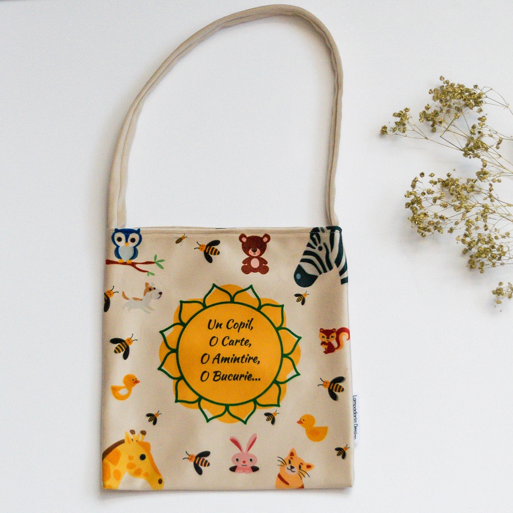 Obiceiul de a citi se deprinde încă de la o vârstă fragedă la fel ca și grija pentru a proteja lucrurile valoroase. Această husă pentru carte/trăistuță pentru copii îmbină joaca cu grija, astfel încât copilașii să înțeleagă valoarea unei cărți încă de mici. Bineînțeles că există spațiu și pentru jucăria preferată pe lângă o carte.