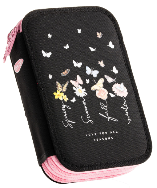 Penarul de la DACO este un accesoriu frumos și practic, conceput pentru a vă ajuta să vă păstrați stiloul, creioanele, markerele și alte obiecte de papetărie organizate. Este prevăzut cu două compartimente principale, fiecare cu propriul său fermoar, oferind o separare eficientă a conținutului.