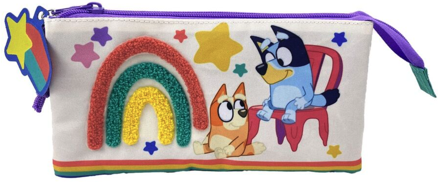 BLUEY: Faceți o declarație cu această carcasă triplă cu un design colorat Bluey și Bingo. O poti completa si cu restul accesoriilor din colectia Bluey. Distrează-te și învață cu Bluey! Acest caz cu Bluey și Bingo va fi cel mai bun coleg de clasă pentru cei mici din casă.