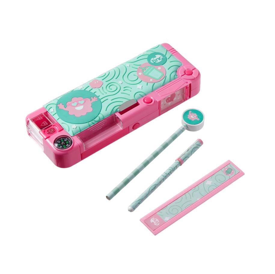 Acest penar cu personajul MINTEE este atât distractiv, cât și funcțional - având butoane care ies în compartimente atunci când le apăsați - puteți pune tot ce aveți nevoie pentru o trusă de școală în această trusă funky. topper, pix și riglă de 15 cm.