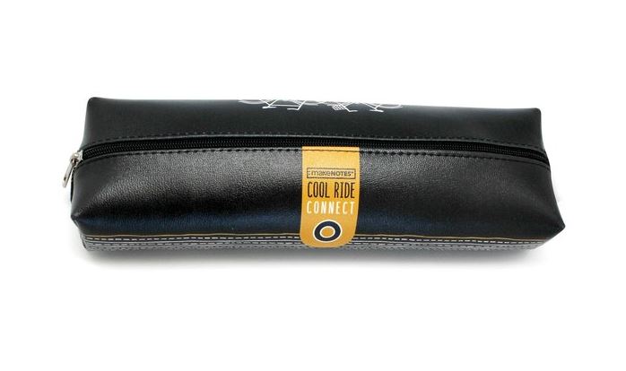 Penar mare cu fermoar pentru închidere și elastic de prindere, confecționat din piele sintetică, ideal pentru pixuri, creioane, radiere și alte instrumente creative.