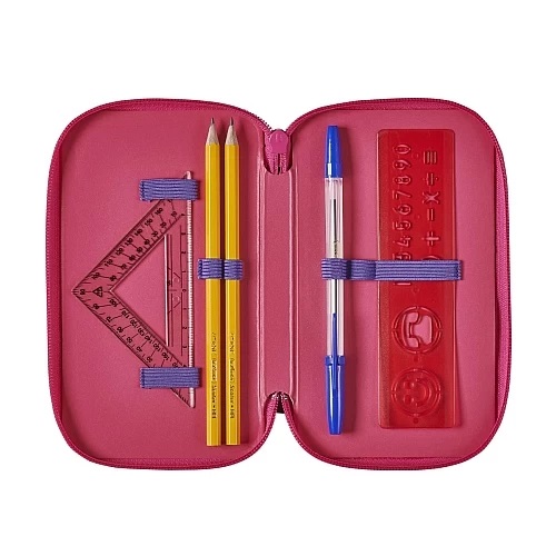 Conține: 8 creioane colorate, 14 carioci, 2 creioane grafit, 1 pix albastru, 1 radieră, 1 ascuțitoare, 1 riglă 17 cm, 2 echere, 1 șablon cu diverse forme și cifre.