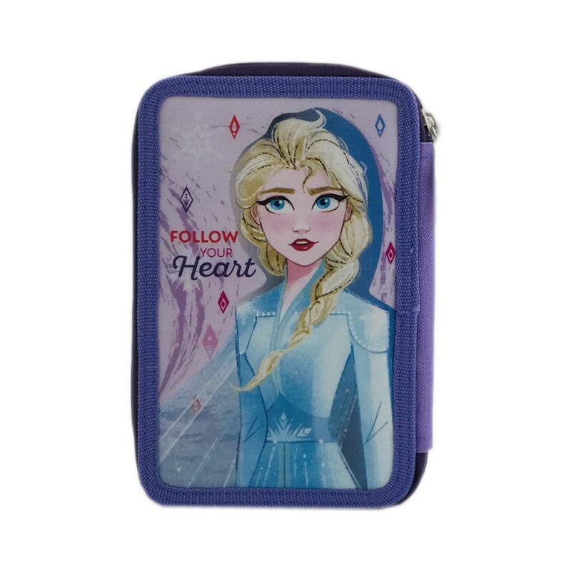 Penar cu 3 fermoare, 3 compartimente diferite cu multiple spatii de depozitare: 42 mici pentru creioane/carioci/pixuri, 3 medii pentru radiera/rigla/radiera si 1 mare pentru echer, fermoarele sunt accesorizate cu personaje in miniatura.