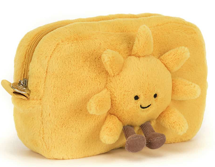 Considerați punga Amuseables Sun Pouch geanta voastră plină de soare... Având blană galbenă, cizme mici și un fermoar, acest accesoriu este inspirat de Amuseables Sun: o meteorolog amator (motto-ul ei: optimismul pe primul loc, precizia pe al doilea) în preajma căreia este o plăcere să fii.