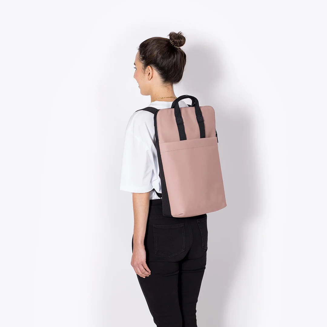 Rucsac elegant și minimalist care poate fi purtat și ca geantă de umăr.