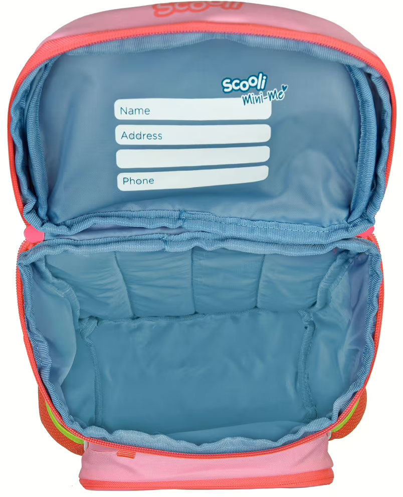 Datorită spatelui căptușit, bretelelor de umăr reglabile continuu și curelei de piept, este confortabil de transportat - chiar și în timpul ieșirilor mai lungi. Scooli Mini-Me dispune, de asemenea, de o buclă de transport/agățare pentru a-l agăța pe cuier.