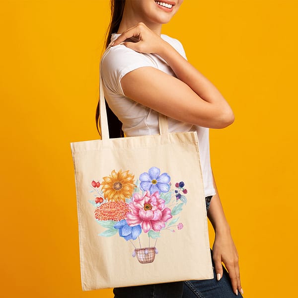 Sacosa textila cu flori. O poti purta lejer pe umar.