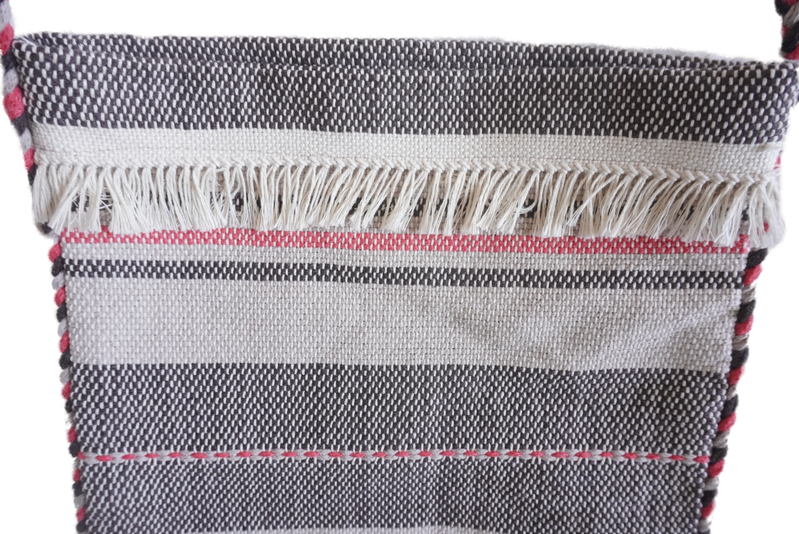 Traistuta este tesuta manual la razboi, este din bumbac si are dimensiunile 28 cm x 35 cm.