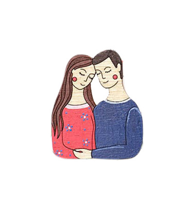 Broșă Îndrăgostiți, pictată manual pe lemn cu multă atenție la detalii, creată după un design propriu.